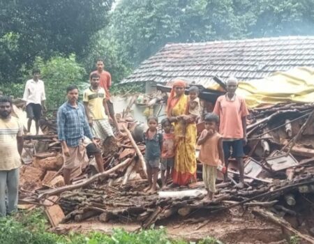 भारी बारिश से आदिवासी परिवार का कच्चा मकान ध्वस्त