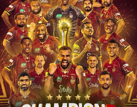 рд╕реАрдкреАрдПрд▓ 2025: рдЯреНрд░рд┐рдирдмрд╛рдЧреЛ рдирд╛рдЗрдЯ рд░рд╛рдЗрдбрд░реНрд╕ рдиреЗ рдкрд╛рдВрдЪрд╡реАрдВ рдмрд╛рд░ рдЬреАрддрд╛ рдЦрд┐рддрд╛рдм, рдЧрдпрд╛рдирд╛ рдХреЛ 3 рд╡рд┐рдХреЗрдЯ рд╕реЗ рд╣рд░рд╛рдпрд╛