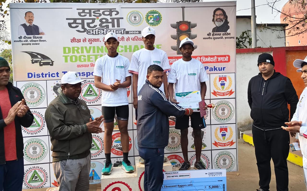 गणतंत्र दिवस एवं सड़क सुरक्षा सप्ताह के अवसर पर जिला प्रशासन, पाकुड़ की ओर से जिला स्तरीय साइकिलिंग प्रतियोगिता का भव्य आयोजन किया गया। प्रतियोगिता में जिले के 100 से अधिक बालक एवं बालिका प्रतिभागियों ने उत्साह और खेल भावना के साथ भाग लिया।
