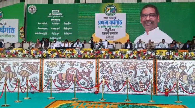 झारखंड सरकार के एक वर्ष पूरा होने के अवसर पर आज मोरहाबादी मैदान में भव्य समारोह आयोजित किया गया, जहां मुख्यमंत्री हेमन्त सोरेन ने राज्य के 8792 नवचयनित अभ्यर्थियों को नियुक्ति पत्र सौंपे। राज्य सरकार के कार्यकाल के पहले वर्ष के इस उपलब्धि समारोह में युवाओं का उत्साह और ऊर्जा देखने लायक रहा।