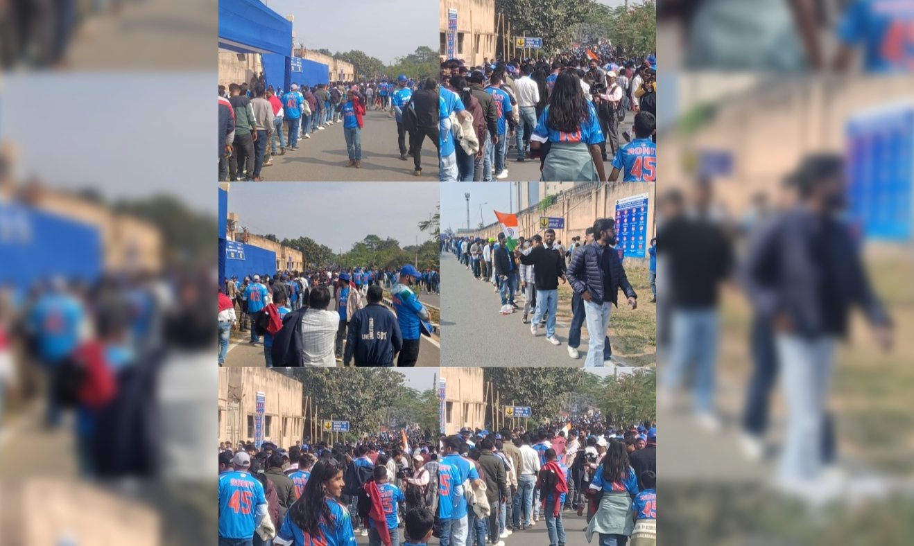 विराट कोहली और रोहित शर्मा की झलक पाने के लिए हजारों प्रशंसक जर्सी पहनकर लाइन में खड़े नजर आए। स्टेडियम के भीतर और बाहर नीली जर्सियों का सागर उमड़ पड़ा। खास बात यह है कि इस मैच को देखने देश के कई राज्यों के साथ-साथ विदेशों से भी दर्शक पहुंचे हैं।