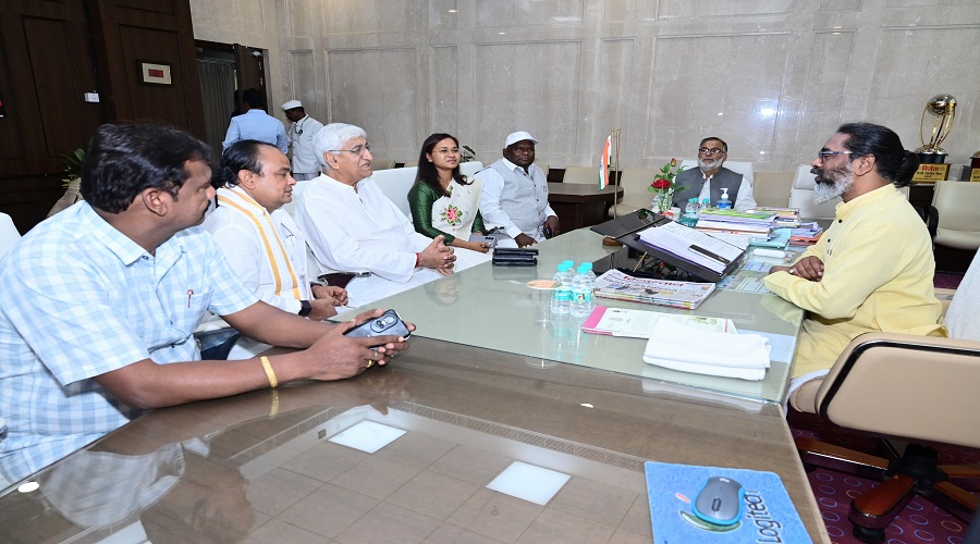 रांची। मुख्यमंत्री हेमंत सोरेन से आज झारखंड विधानसभा स्थित मुख्यमंत्री कक्ष में छत्तीसगढ़ के पूर्व उप मुख्यमंत्री टी एस सिंहदेव ने औपचारिक मुलाकात की। इस दौरान उनके बीच विभिन्न विषयों पर चर्चा हुई। इस मौके पर कृषि मंत्री शिल्पी नेहा तिर्की, मंत्री इरफान अंसारी एवं विधायक रामचन्द्र सिंह भी मौजूद थे।