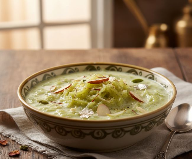 • सामग्री: कद्दूकस की हुई लौकी, फुल क्रीम दूध, चीनी, इलायची पाउडर और कुछ बारीक कटे हुए मेवे।