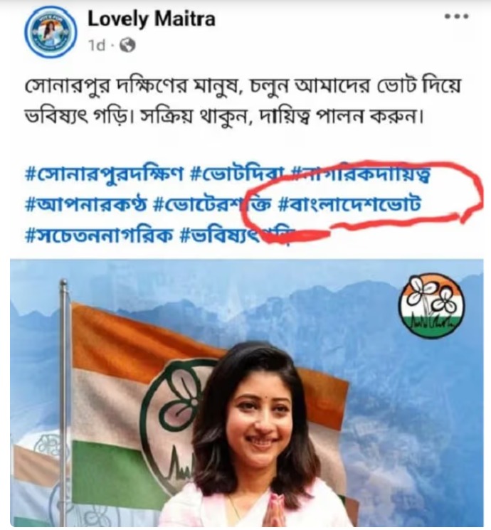 बताया जाता है कि लवली मैत्रा ने फेसबुक पर सोनारपुर दक्षिण के मतदाताओं के लिए पोस्ट किया, जिसमें लिखा था: