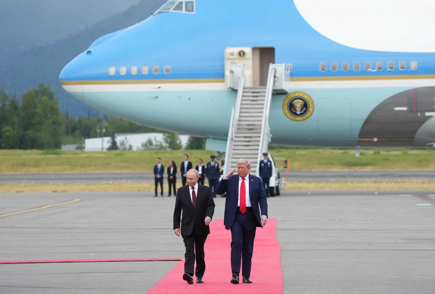 अलास्का। अलास्का शिखर सम्मेलन में शुक्रवार को अमेरिकी राष्ट्रपति डोनाल्ड जे. ट्रंप और रूस के राष्ट्रपति व्लादिमीर वी. पुतिन ने यूक्रेन में युद्धविराम पर चर्चा की। दोनों नेताओं के मध्य एंकोरेज स्थित ज्वाइंट बेस एल्मेंडॉर्फ-रिचर्डसन में लगभग तीन घंटे बैठक चली। इसके बाद दोनों ने संयुक्त रूप से पत्रकारों से बातचीत की। अमेरिकी राष्ट्रपति ने युद्धविराम का दारोमदार यूक्रेन के राष्ट्रपति व्लादिमीर जेलेंस्की पर छोड़ दिया।
