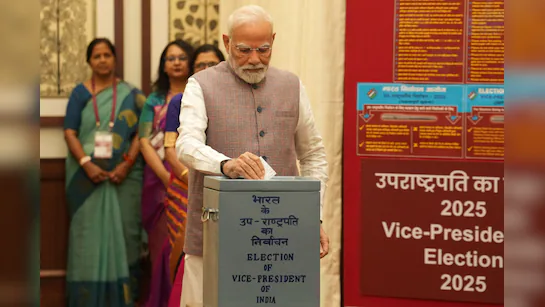 नई दिल्ली।  उपराष्ट्रपति चुनाव को लेकर वोटिंग का दौर शुरू हो चुका है। प्रधानमंत्री नरेंद्र मोदी ने सबसे पहले मतदान किया। उनका आज बाढ़ प्रभावित पंजाब और हिमाचल दौरे पर जाने का कार्यक्रम है। इससे पहले सुबह 10 बजे वोटिंग प्रक्रिया शुरू होने पर प्रधानमंत्री मोदी नए संसद भवन पहुंचे और अपना वोट डाला। इस बार मुख्य मुकाबला एनडीए उम्मीदवार और महाराष्ट्र के राज्यपाल सी.पी. राधाकृष्णन और विपक्षी दल इंडिया ब्लॉक के उम्मीदवार और सुप्रीम कोर्ट के पूर्व न्यायाधीश बी. सुदर्शन रेड्डी के बीच है।