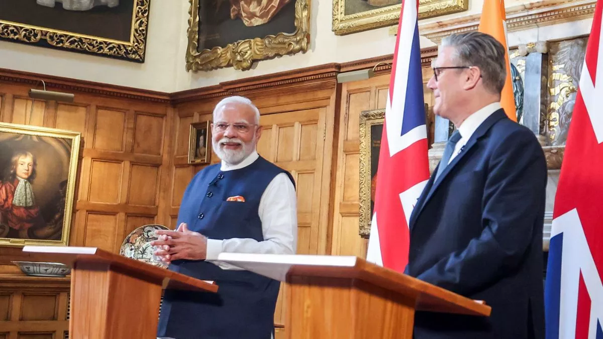 नई दिल्ली। प्रधानमंत्री नरेंद्र मोदी पिछले दिनों ब्रिटेने के दौरे पर रहे। पीएम मोदी का ये दौरा कई मायनों में खास रहा। गुरुवार को पीएम मोदी ने ब्रिटिश पीएम कीर स्टार्मर से मुलाकात की और इसी दौरान ऐतिहासिक मुक्त व्यापार समझौते पर हस्ताक्षर किए गए।