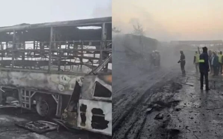 मथुरा: यमुना एक्सप्रेस-वे पर घने कोहरे के कारण सोमवार सुबह बड़ा सड़क हादसा हो गया। थाना बलदेव क्षेत्र में माइलस्टोन 127 के पास 7 बसें और 3 कारें आपस में भिड़ गईं। टक्कर के बाद कई वाहनों में आग लग गई, जिससे मौके पर अफरा-तफरी मच गई। हादसे में अब तक 4 लोगों की जलकर मौत की पुष्टि हुई है, जबकि मृतकों की संख्या बढ़ने की आशंका जताई जा रही है।